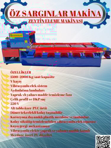 30 Yıllık Makina İmalatı Tecrübesiyle Zeytin eleme Makinalari,zeytin çizme ve kırma, zeytin,ceviz,badem silkeleme makinası Üretiyoruz